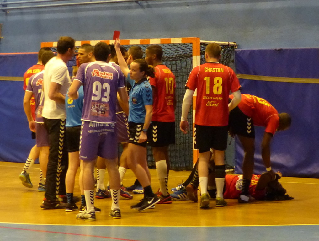 Très vite (4ème minute), un mauvais geste libournais sur Olivier en pleine extension a entraîné la disqualification immédiate de Hicham Hammadi, un des meilleurs joueurs adverses.