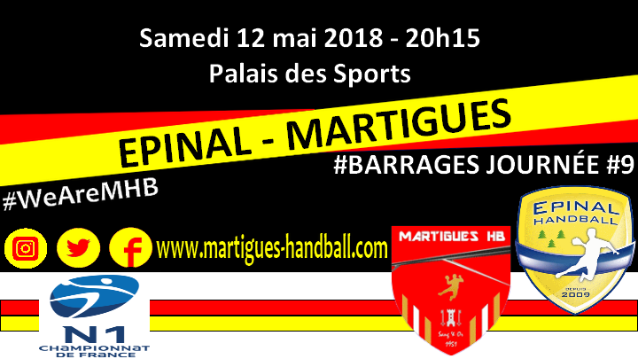 Les Martégaux retrouvent le Palais et y viseront la passe de trois. Un nouveau succès ô combien important à glaner qui plus est face au premier relégable spinalien. Le MHB ferait ainsi un grand pas vers le maintien en comptant 4 unités d’avance et le particulier sur son adversaire. Il ne manquerait alors plus qu’un succès au MHB, voire même un revers d’Epinal lors des 3 dernières journées, pour permettre aux Martégaux d’acter leur maintien. Vous l’aurez compris, les hommes de Franck Bulleux auront besoin de votre soutien pour se rapprocher de leur objectif. Comme d’habitude, aucune excuse pour ne pas venir les encourager puisque l’entrée est gratuite. On compte sur vous ! #WeAreMHB #AllezMartigues #TeamMHB #MHB #Handball