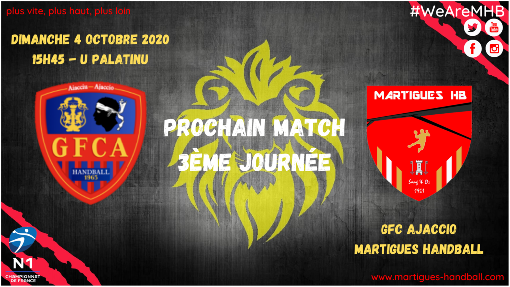 Déplacement compliqué pour les Sang et Or en Corse, face au Gazélec Ajaccio grandissime favori de la poule 5 de Nationale 1. Après leur défaite face à Draguignan, les hommes de Franck Bulleux tenteront de se relancer. Mais rien ne sera facile avec un effectif toujours amoindri face à une grosse cylindrée, qui plus est dans un chaudron U Palatinu où il est toujours difficile de s'imposer. Pour espérer exister et réaliser une performance sur l'Île de beauté, les Lions devront sortir les griffes dès les premières minutes de la partie, être efficaces dans les deux zones. Afficher une grosse activité défensive pour faire douter les Insulaires et jouer les coups à fond. Bref, réaliser un match plein pour y croire. #WeAreMHB #GFCAMHB #AllezMartigues #TeamMHB #MHB #Handball #Nationale1