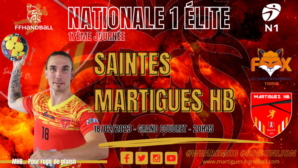 Cap sur la côte Atlantique pour le MHB pour y défier Saintes, l'un des sérieux clients de N1 Élite. Une formation charentaise à la relance après 3 revers consécutifs en 2023. Toujours quatrièmes, les Fox voudront renouer avec le succès pour ne pas se faire distancer de la course à l'accession. Côté martégal, les protégés de Franck Bulleux, désormais dans la première partie du classement (6es), sont résolus à poursuivre leur marche en avant. Avec la ferme volonté de signer un 7e succès de rang avant la trêve jusqu'au 11 mars. Ainsi pouvoir intégrer le top 5 pour prouver que le promu martégal continue de se faire une place au milieu des 11 équipes qui possèdent elles le statut pro. Un duel de haut de tableau qui s'annonce disputé et indécis mais qui pourrait permettre au MHB de pousuivre sa progression. Mais rien ne sera simple dans une antre saintaise où il est toujours très difficile de s'imposer.