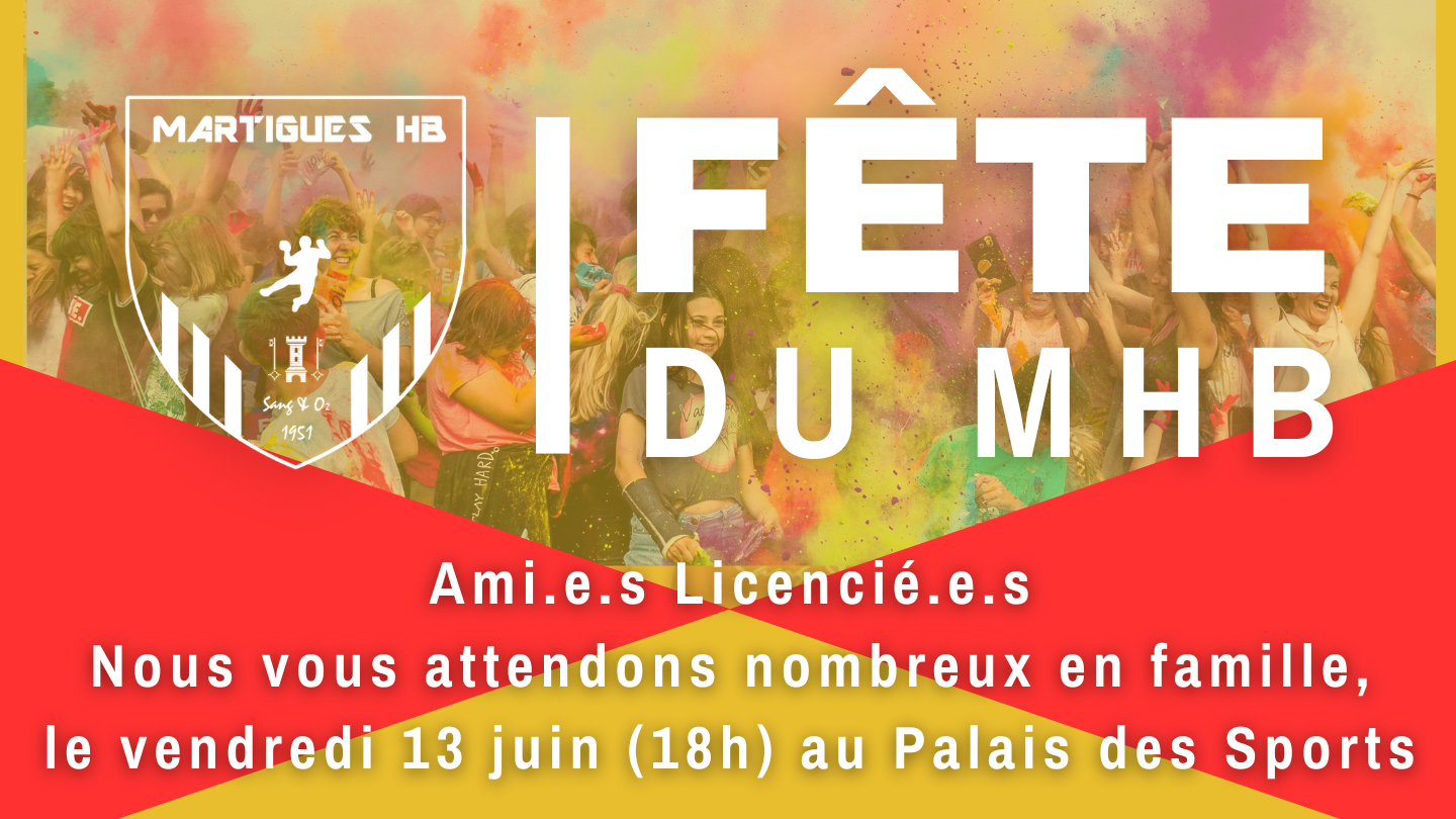 OYEZ, OYEZ ! TOUS AU PALAIS LE 13 JUIN ! Le Martigues Handball donne rendez-vous à ses licencié.e.s et leurs parents pour la traditionnelle fête du club. Nous sommes heureux de pouvoir vous convier à ce moment de partage pour clôturer la saison par un apéro-barbecue, le tout avec une animation musicale, une structure gonflable, etc...